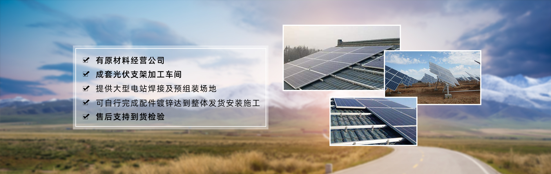 天津市宇富盛新能源科技有限公司成立于2019年,是一家集生產,銷售于一體的科技型天津光伏支架生產廠家生產企業,始終本著保持質量,服務至上的經營理念。以嚴格的質量做好每一個天津熱鍍鋅光伏支架。在產品質量及服務等方面保持國內同行業水平。 宇富盛新能源作為一家生產天津太陽能光伏支架和光伏配件的制造企業,其主要生產類型包括屋頂光伏支架,地面光伏支架,集中式電站光伏支架,漁光互補光伏支架,農光互補光伏支架,彩鋼瓦屋頂支架,BIPV陽光房防水材料,光伏水泥墩,豬舍,雞舍,鴨舍等各種鋼結構大棚,鋼結構廠房構建,鋼結構車棚,光伏地樁等各種類型電站支架的定做與加工。 現貨經營銷售熱鍍鋅光伏支架,鋅鎂鋁光伏支架,鋅鎂鋁防水水槽,鋅鎂鋁打孔防水水槽,鋁合金防水水槽,鋅鎂鋁屋脊蓋板,鋅鎂鋁屋頂踏板,鋅鎂鋁方管,熱鍍鋅鍍鋅扁鐵,熱鍍鋅接地角鐵,熱鍍鋅方管,熱鍍鋅圓管。 同時可根據客戶的依據要求對客戶的設計方案進行優化,在滿...